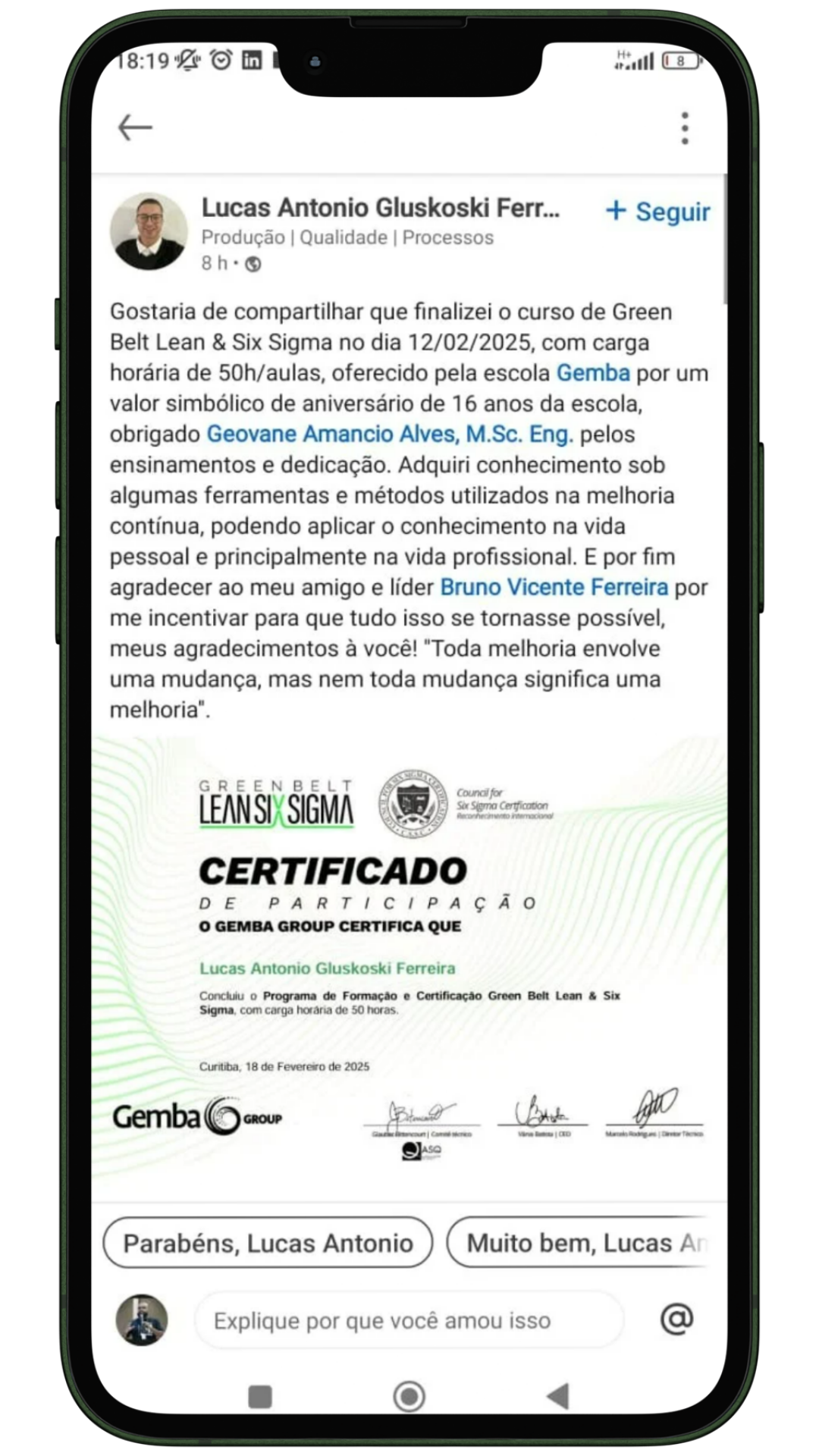 O Green Belt é uma certificação da metodologia Lean & Six Sigma e pode ser a sua porta de entrada para se tornar um líder em melhoria contínua dentro da sua organização. Ao dominar ferramentas poderosas como o ciclo DMAIC, você não apenas resolve problemas complexos, mas também entrega resultados mensuráveis que destacam sua carreira e fazem a diferença na empresa.